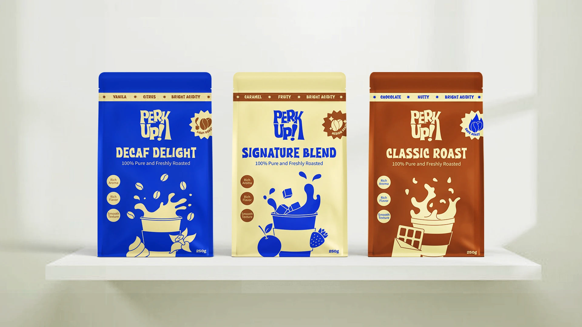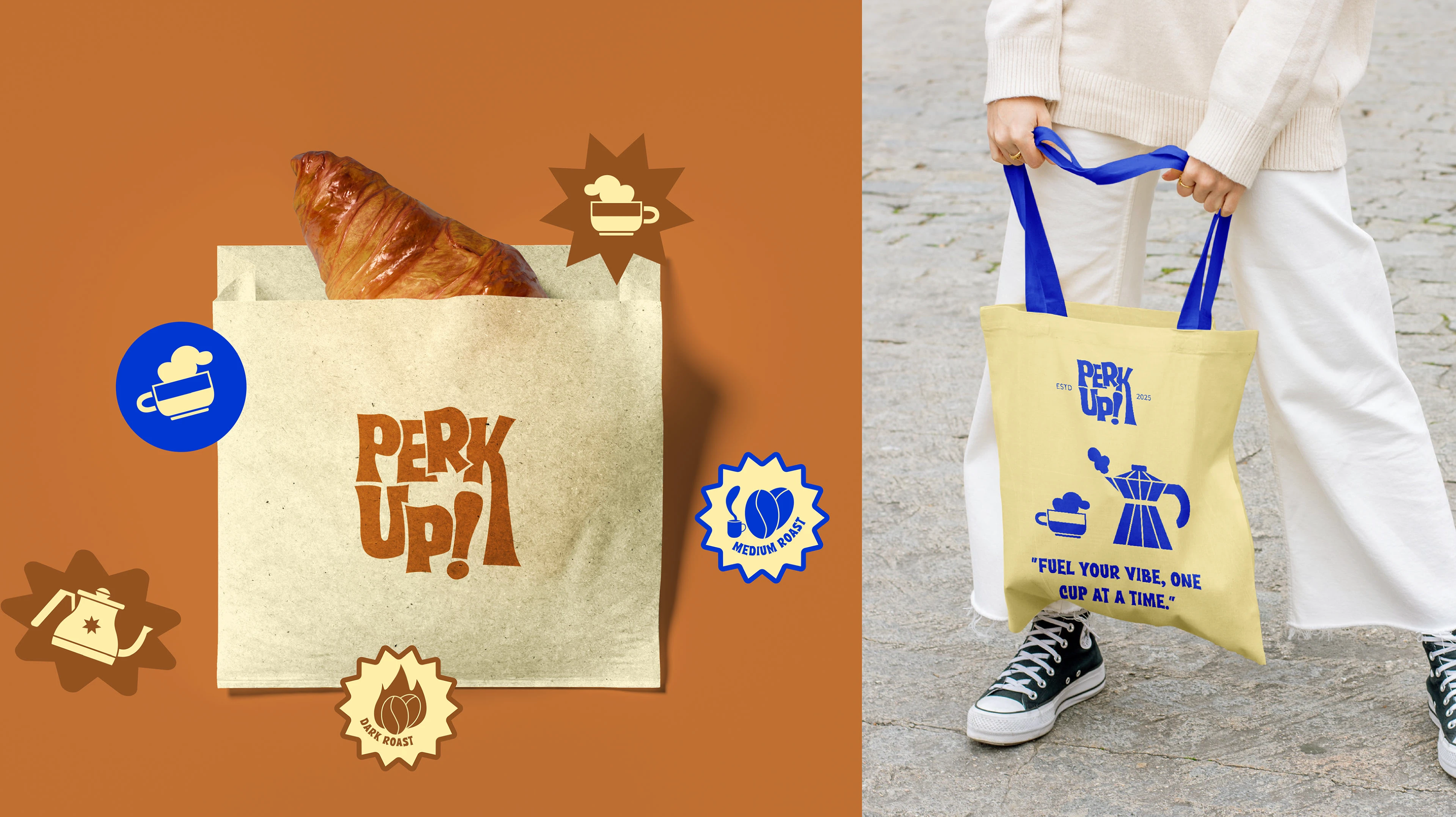 Perk Up! is not just a café—it's a vibrant, illustration-driven experience where coffee meets creativity. Designed for those who crave energy, inspiration, and a splash of fun, Perk Up! transforms everyday coffee moments into an artistic escape. VISUAL IDENTITY Perk Up! thrives on bold, funky, and playful illustrations that bring its personality to life. Every packaging, mural, and menu item is infused with lively artwork, making the brand instantly recognizable. The café's aesthetic is a mix of bright colors, dynamic typography, and quirky doodles, embodying an energetic and welcoming space.